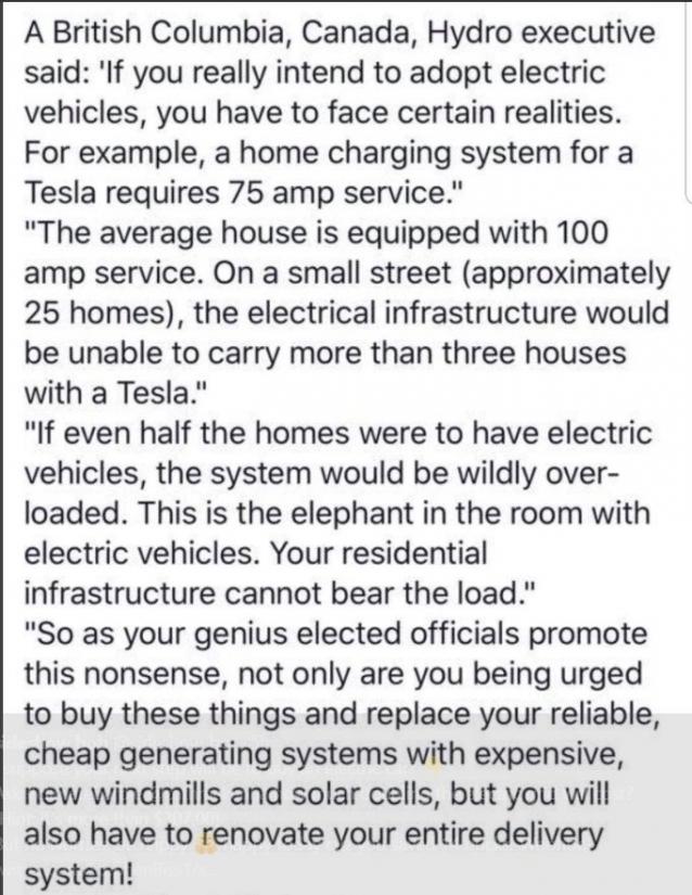 This guy now has a price on his head. Speaking truth like that to BS. Everyone capable of though knows that the electric grid can't handle electric cars and nobody has the money to fund upgrades like this. Sure glad the subsidies to buy the things got cut when they did.