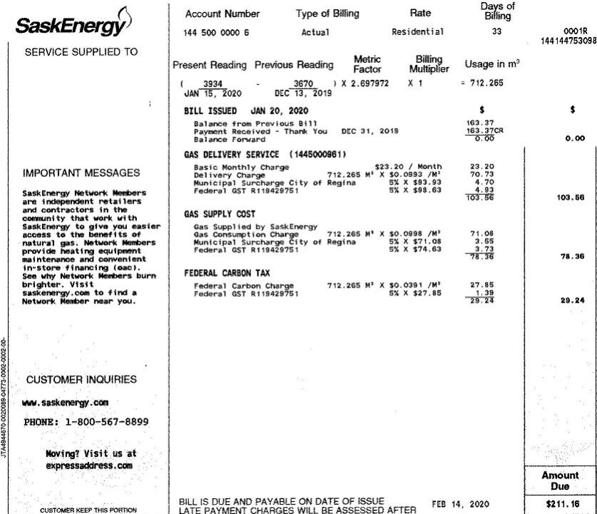 First bills from the new year and the carbon **** has expanded. Multiple levels of city surcharge, tax, GST, carbon levy.