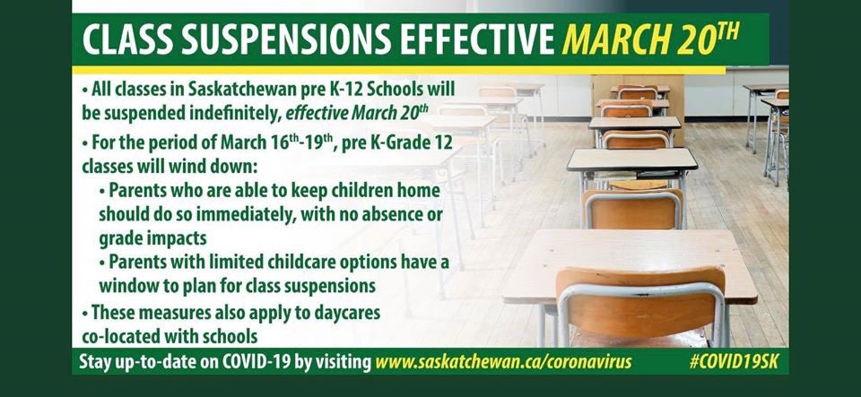 All sports and large Gatherings Cancelled Last week But Sask Health Doesn’t close long term Care and sask Education Keeps Crowded Classroom Going !?!