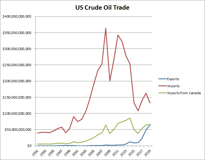 How much oil does the US import? Do they export any? The answer to those questions will determine how world oil prices will affect them. I thought they wanted self sufficiency so they couldn't be held hostage by foreign oil? Canada is the one getting kicked ibn the nuts while they are already down! And there's nothing they can do about it.