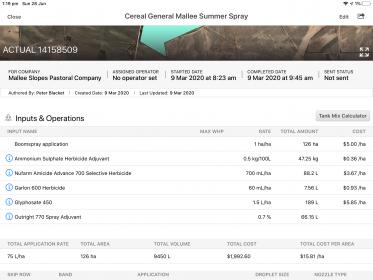What it’s telling you my total crop expenses are from summer spray jan feb, knockdown spray and pre seed spray fert and operations and seed costs are $149 per ha thus far.