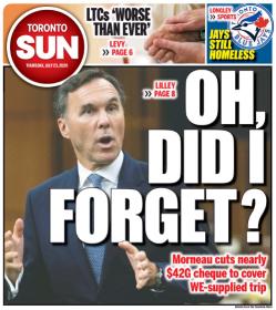 Busted... not likely as this was an innocent oversight on his part; $41,000 dollars is pocket change that he corrected a hour before appearing to answer questions about his involvement. How can someone in charge of the country’s finances be expected to realize that free stuff does just magically appear at no cost? How can he be held responsible to realize his personal ties to the “We†Crime Charity is a conflict of interest? How can we expect the minister of finance to ask financial questions and look into a “charity†we are asking to administer a billion dollars for a fee of $43 million?