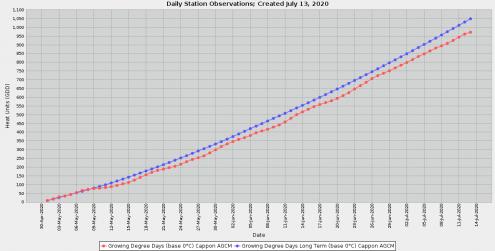 GDD (base 5*) - May 1 to yesterday: here i made 600 as of yesterday, but long term normal is about 675.