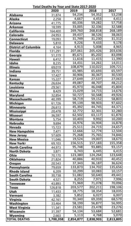 Also released late last week is the TOTAL year to date death #'s for the USA and broken down by state.