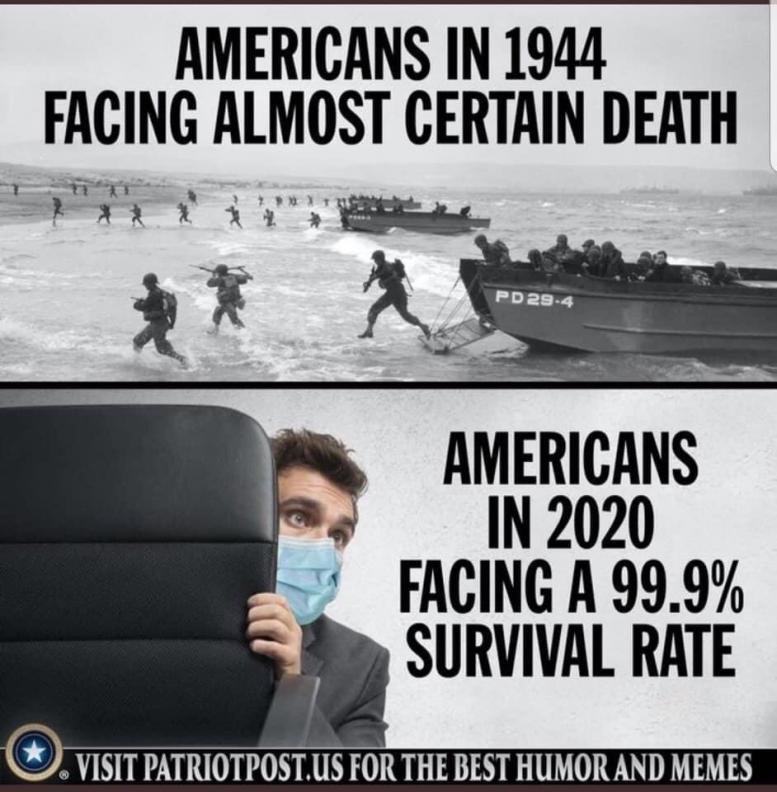 So the best you can come up with in response is a stupid propaganda meme? And I mean stupid! Do you question anything you post, or as long as it fits with you views it must be true. For example, consider these FACTS with respect to your meme stating: "Americans in 1944 facing almost certain death"Originally posted by jazz View Post[ATTACH]6775[/ATTACH].