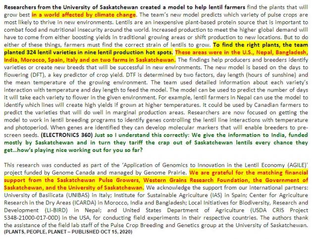 To add further credence to the study. Saskatchewan's two farm plots were in the lentil "hot spots" of Saskatoon (Sutherland) and Rosthern.