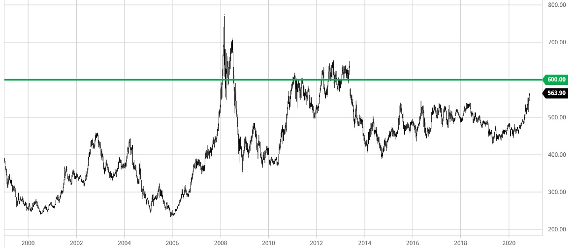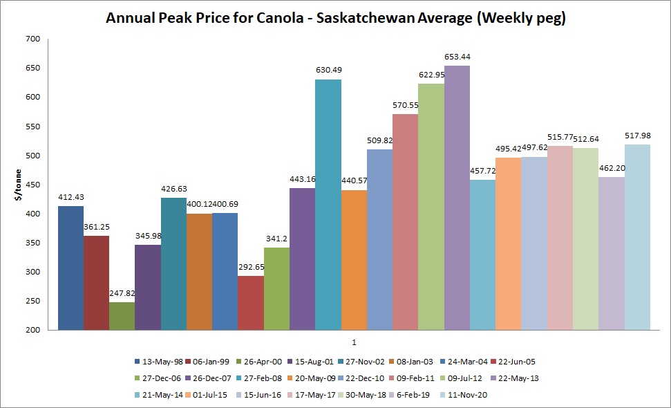 Could you please put up a historical canola chart showing how many times canola hit $600/tonne.