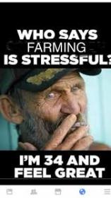 Here, stress if the snow will melt before May, then stress if the ground will dry up enough to be passable at all, seed into cold wet soil, regardless what the calendar says, probably in the rain and or snow, stress about how many times to get stuck today, risk a late season frost, pray it doesn't all drown out, watch every storm cloud for hail(always get at least one hail storm), stress about finding a window for spraying between rains, and about the ruts made, stress about the wildlife eating, destroying the crop, stress about neigbors, or your own cows breaking into and trampling crops, stress about the life size weeds (trees) destroying the crop 50 feet in every direction, stress about the early fall frost, then about the snowed under crops, then about picking up flat crops, then about drying wet crops, if they will go through the combine at all, stress about getting combines stuck. Stress about all the compaction from all the operations in the mud.