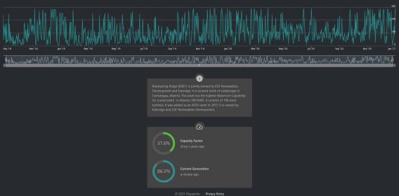 It is noteworthy that you failed to post the graph for the 30 day production at Blackrock. I checked it, and I counted 16 spikes in one month from essentially zero to essentially 100% in a matter of minutes to hours, and back again. And that is using your cherry picked month of December when its average production was far above its long term average( thanks to a very warm month with many Chinooks blowing through. Can you wrap your head around what happens when anything more than a small token amount of generation comes from such an unreliable and fast changing source? That is average of once every two days it spikes from nothing to everything and back again. Only half as bad as solar which does that everyday, except when it fails to spike such as this time of year as in the brooks example above.