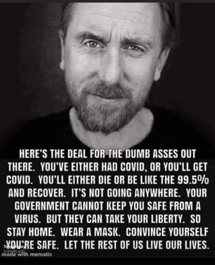 Had one healthy cousin in the family, living in Red Deer, accountant, who didn't think much about the whole deal. She got infected and had a rough ride. Gave me a giggle as she is usually high on her horse and figures she is much smarter than everyone else. Well she enjoyed a healthy dose of horse shyt while she got trampled into the ground by the virus. Don't often see someone do a completely 180 on her 'beliefs' as fast as she did.
