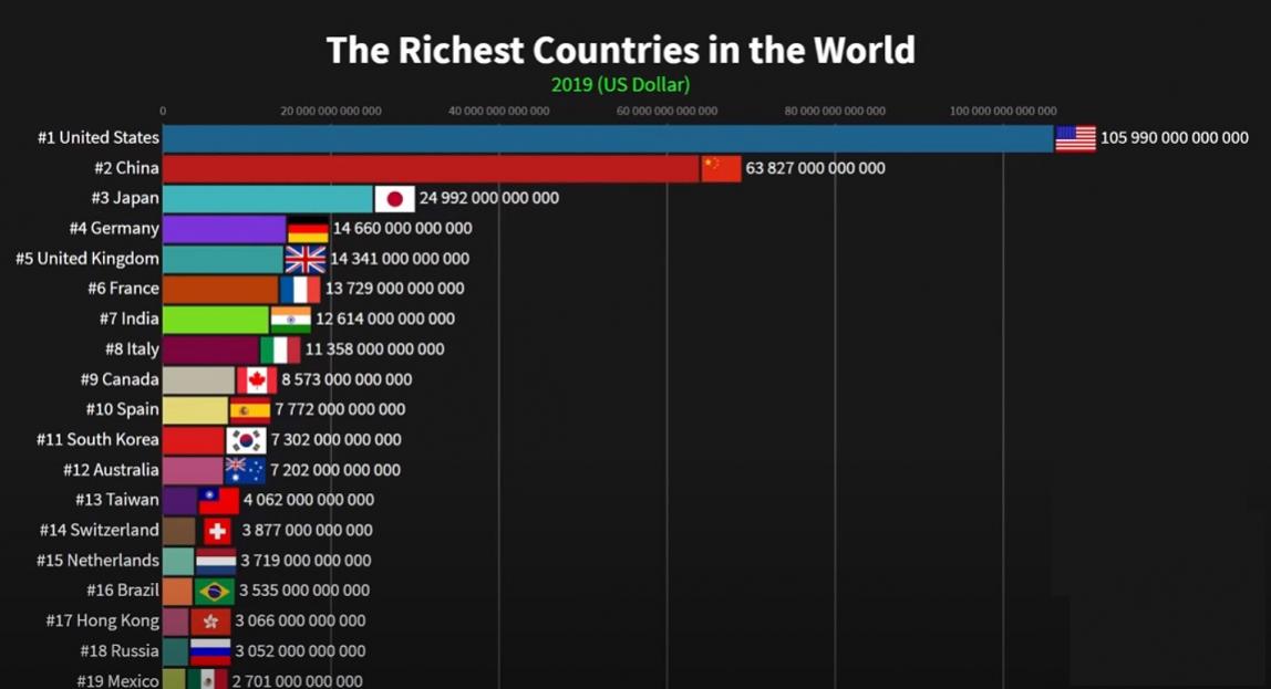 China and india have 30 times our population and have had endless growth in the past 25 yrs and yet their net worth is only 7.5 times and 1.5 times respectively greater than our net worth. Our net worth exceeds even Russia.