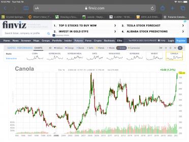 In hindsight each sell decision seemed justified. The first canola I sold at $10.96, seemed reasonable at the time was shipped in November. This was higher than any canola sold in the previous year. The last I sold at $16.84, did I jump too soon, certainly in hindsight but each time I sold on the way up I was happy at the time but it didn't take long to be proven wrong. The question now is should I lock any in for fall and at what price?!Originally posted by wmoebis View PostDid you use market consultant? If not will you from now on? $5.88 is a pile of $'s to miss out on.