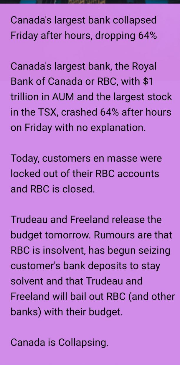 Trudeau will just print up a new batch of loons.Originally posted by biglentil View PostSome were claiming RB was insolvent and closing customer accounts. I do not think that's the case, but it sure was strange market action. You won't find anything about it on Google it's been scrubbed.