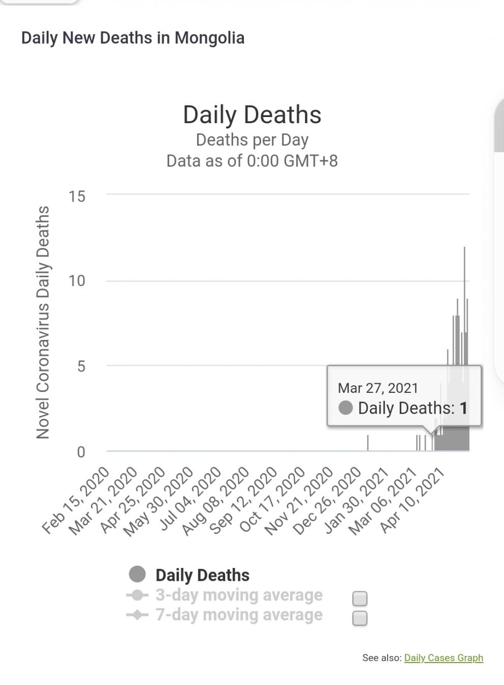 Is that chart really saying they went from nobody dying in February (some deaths earlier on though) to..... 1.6 people per million dying?Originally posted by biglentil View PostVaccines working as intended in Mongolia.