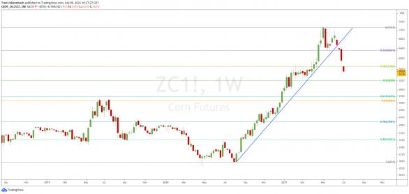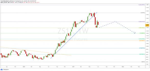 Soybeans catching a bounce after breaking the trendline from Augut 2020