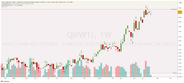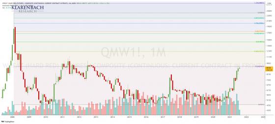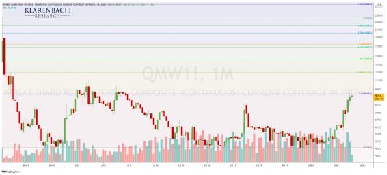 Taking a look at the MGEX Hard Red Spring Wheat Futures Composite Index monthly chart.