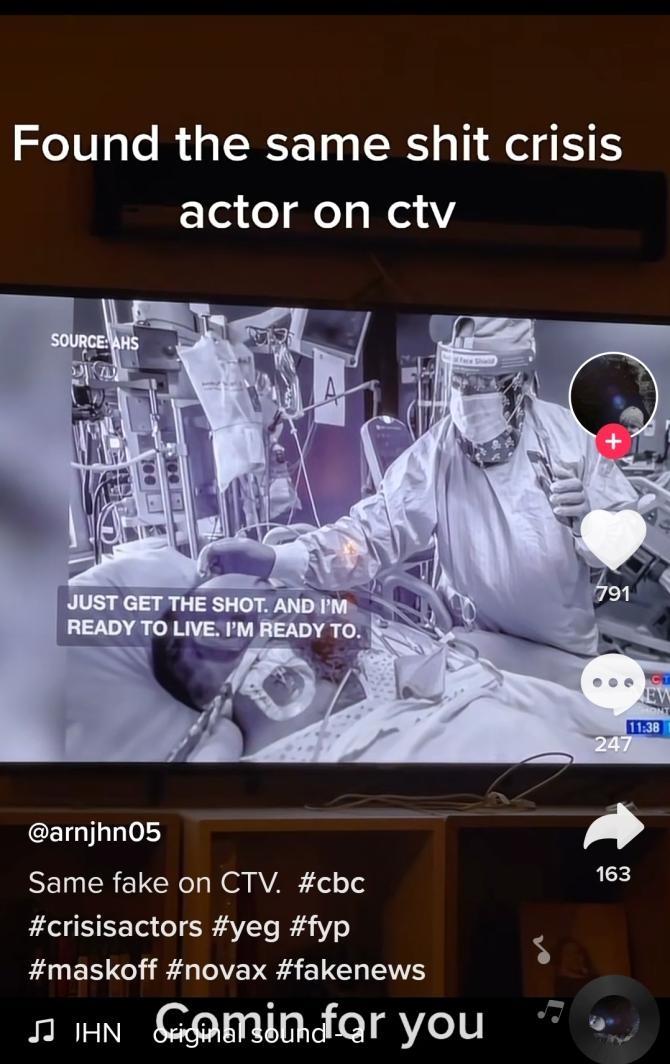 Same known crisis actor being pushed on CTV and CBC. Tells people to 'get the damn shot' The skull and ☠on the icu nurses face too much but is the one shread of truth https://vm.tiktok.com/ZMRWHu8Ss/