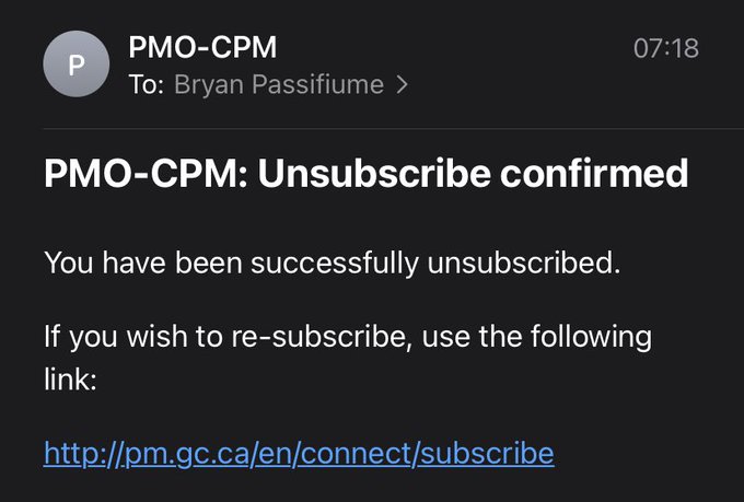 Anyone else find themselves spontaneously unsubscribed to the Prime Minister’s Office updates this morning …. or just me?