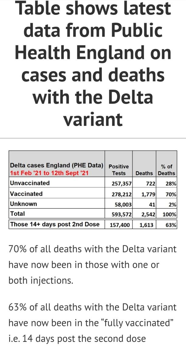 And ask yourself why Covid deaths are not skyrocketing given 80+ percent of people in England are now vaccinated and Covid cases hare higher than all summer if deaths are higher in vaccinated when in fact the highest number of deaths per day was before vaccinations occured.
