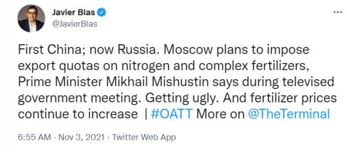 Then the idiot at Nutrient comes out and says farmers are running to buy expensive fertilizer this fall because they see an opportunity.