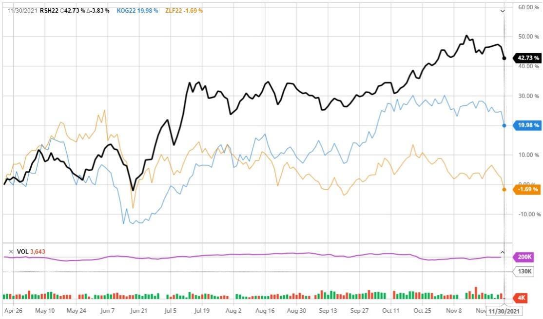 Compared to the other two what are the largest spreads? Is canola close to the peak (spread wise) or is it setting new highs relative to its competition?