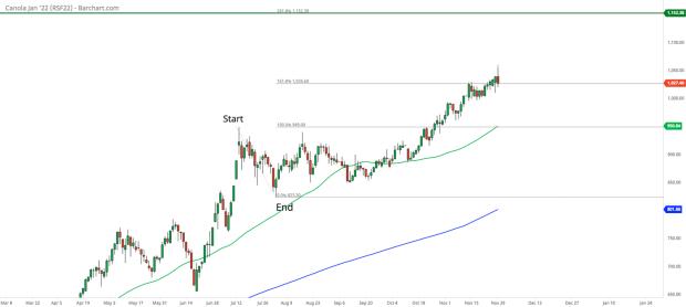 This chart is the daily nearby. Canola still needs to be taken apart to be made into oil and meal.