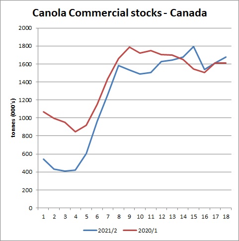 Soyoil futures have collapsed nearly 15% from recent highs. This is also bothering canola. Crude oil weakness and EPA changes on bio-diesel mandate now pressuring global veg oil markets . . . .Originally posted by farming101 View PostNo shortage of commercial stocks at the moment. The amounts in the chart do not include what is on the lakes and on rail. Maybe another 100-110 thousand for week 18 give or take