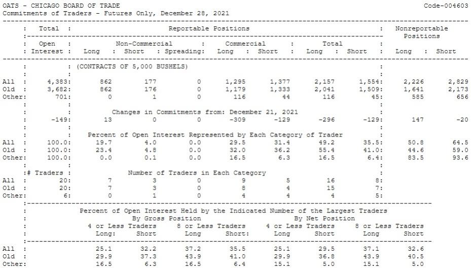 Also of note is that 4 or less entities hold a significant amount of the positions in the oats pit