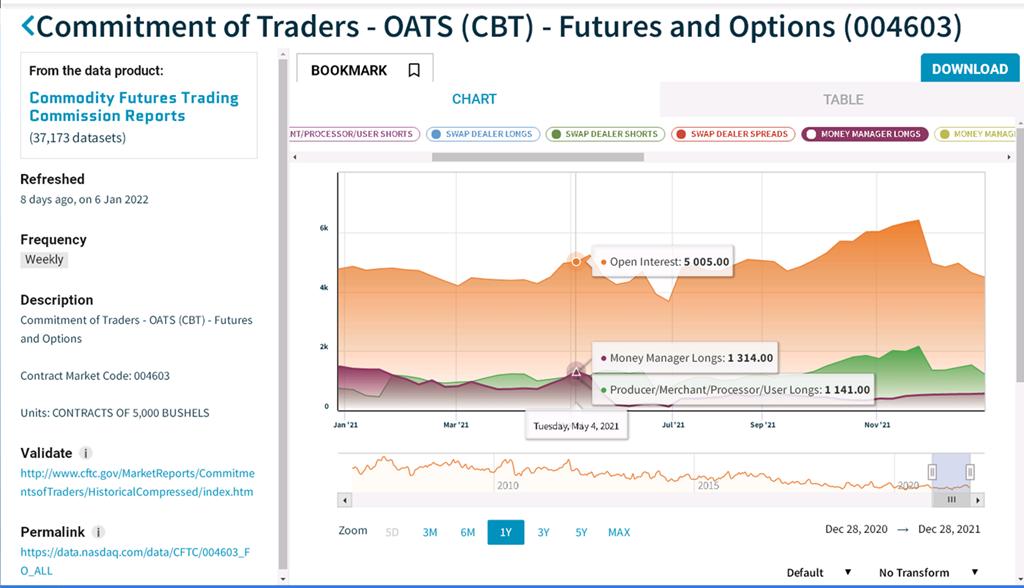 May 04, 2021 - Money Managers owned 26.25% of the oats Open interest.
