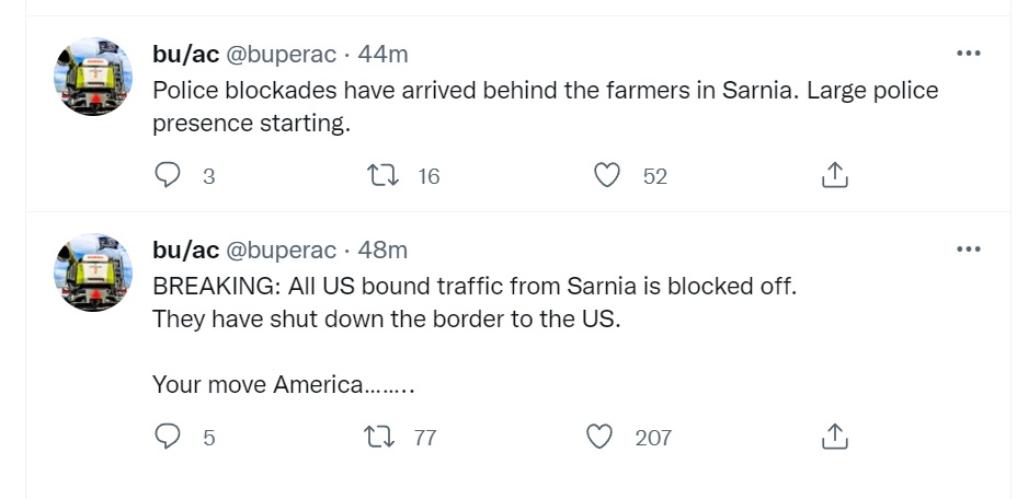 Good to see all the conservatives who support blockades and protests that will hurt business and the freedom of movement of people and goods.
