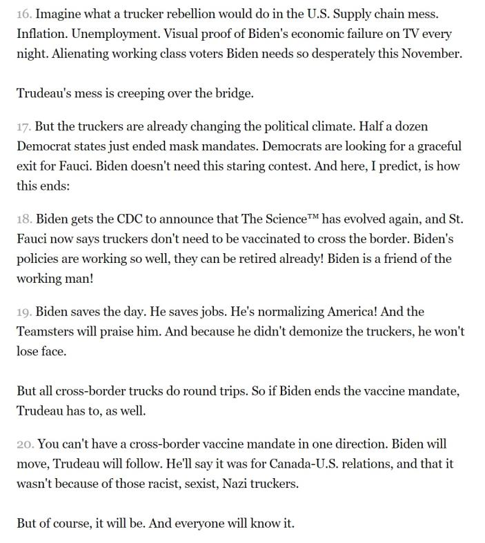 Trudeau will have to divide the movement by giving in to what most of them want. The mandates. Once those are gone 75% of the truckers will be gone. The ones who want his head will have to follow.Originally posted by agstar77 View PostSo what the musicians in the protest have other demands , its endless. The end is near , no government can allow this to continue.