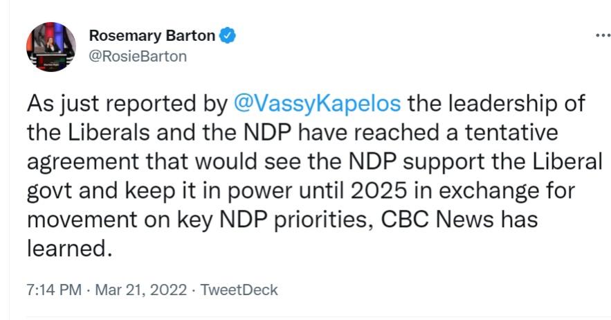 Not a formal coalition, no seats in deal.Originally posted by shtferbrains View PostTypically doesn't the NDP get seats as cabinet ministers?