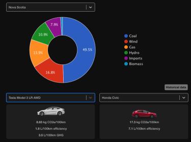Nova Scotia grid (50% coal) on an EV is 8.62kg CO2/100km vs 17.3kg CO2/100km ICE
