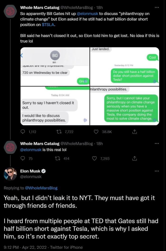 Gates Short Tesla