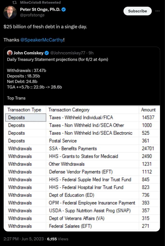 And mere days after the fake debt ceiling fight, US printed up $25B in a single day.
