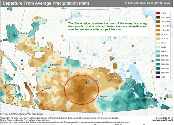 Storms? The amount of hail loss versus the shower that just went through is a net gain on bushels. The deluge in MB this morning is a different story.