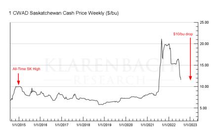 In the case of the Durum market, the post-CWB high price was approximately $10 per bushel in the 2014-15 crop year.