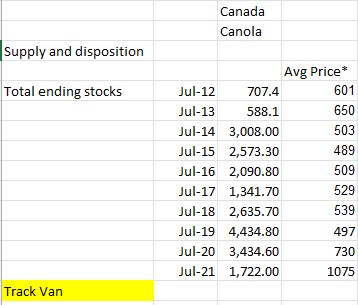 You are now the high at 21.7 MMTOriginally posted by SASKFARMER View Post. Canola across the board will come in at 21.7 mt.