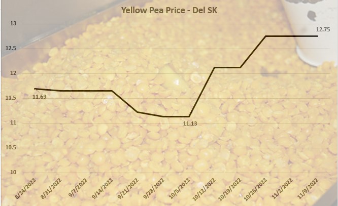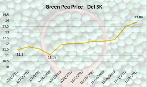 Green peas are bid at $13.00-13.50/bu FOB Farm, depending on the area.