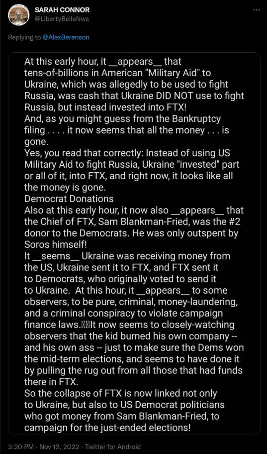 Everyone said crypto was for gangs and drug dealers and criminals. Who would have guessed politicians are the first ones found using it to illegally transfer funds around to big tech, mid term candidates, close races and of course little grifter Zelensky.