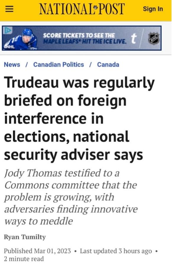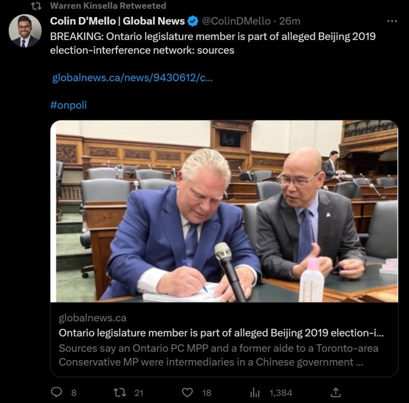 I see Conservative MP Michael Cooper is trying for the third time to have the PM"s chief of staff Katie Telford testify before the House of Commons committee on the Chinese meddling in Canadian elections, but was amended by the Liberals with support from the NDP.