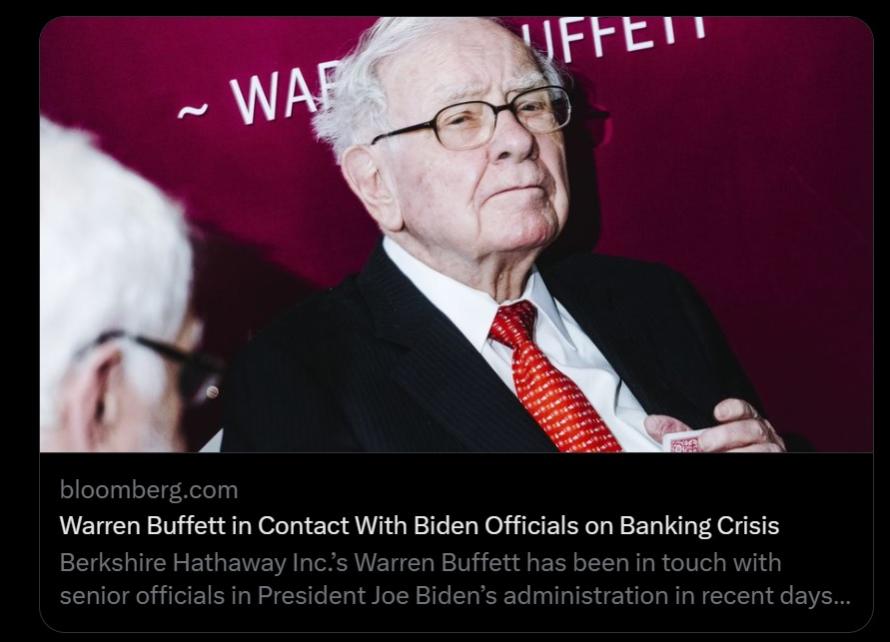 Buffett backstopped some banks back in the 2008 crisis and got paid very handsomely for doing it.Originally posted by shtferbrains View PostWarren Buffet would not have been asked to provide advice to the banks that went broke.