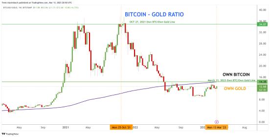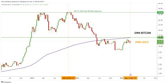 I presented this chart showing my Own BTC/ Own Gold Levels.