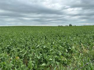 Received 2 in rain last 4 days. Wheat has perked up but too late to give more than a break even yield. Soy was looking good before rain but has now yellowed. I think rain is telling ito grow but dry conditions earlier prevented nodulation. I don't know if it will recover.