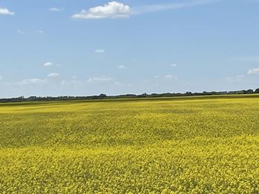 In my area of SE Sask we went from wet and late seeding to too dry. One drives a few miles and the crop variance is enormous as spotty thunder showers will keep a crop going and completely miss a nearby field. With the heat we have had, there is poor spots in fields that have had rain as the crop cant get the moisture quick enough before it burns. There is more and more ugly looking canola out there. I have sprayed more for grass hoppers this year since the 80's. Its gonna get worse once all the hay is cut around. I was late checking a late wheat crop that had a neighboring pasture grazed hard nearby and spots were ate to the ground a long way in (all in a few days). This cooler weather is a blessing for us as there is sub soil moisture here but the crop needs to get to it. We are doing some cheap fungicides to cereals but most have cut back on canola fungicides as its hit and miss most years even in wet years.