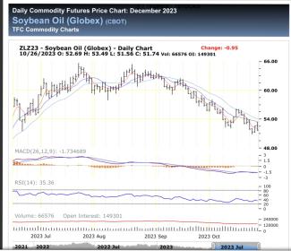 Not much for canola exports and soybeans being crushed more for the meal is forcing soyoil down which directly affects the price of canola. Grain companies picking the low hanging fruit now coupled with input loans coming due before the year end not helping manners. This chart pretty much tells the story. Hopefully we will see the bottom soon.