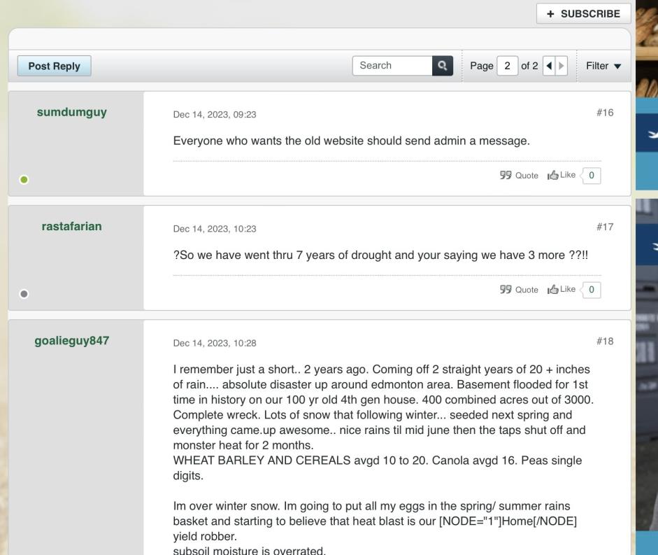 This site still needs to improve but is slowly evolving, my pet peeve is the last post time and date not always being in the right order chronologically. The top of this page shows [NODE="7"]Visitor Messages[/NODE] post on December 13 and should actually read post [NODE="18"]Beef Production[/NODE] and a day later. Screenshots were taken a moment ago. The biggest improvement for me on this site was the uploading of pics, no longer do I have to crop pics to get under 2 mb. Hopefully you can keep improving this site.