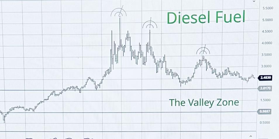 Oil prices, diesel trend remain down. Major support for WTI is now seen at $64.50 per barrel. But my personal longterm target for is $50 per barrel. When? Don’t have a clue.This would break Alberta oil toward $40 per barrel.