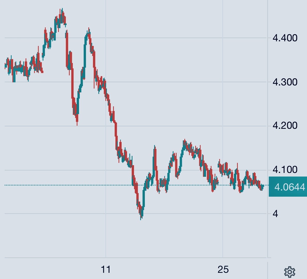 Suffield spot nat gas broke below 75 cents per gigajoule this summer. Now about $2.50, but dirt cheap. Correct me here, but in Ralph Klein days, believe AECO spot approached $14 per gig in its heyday.