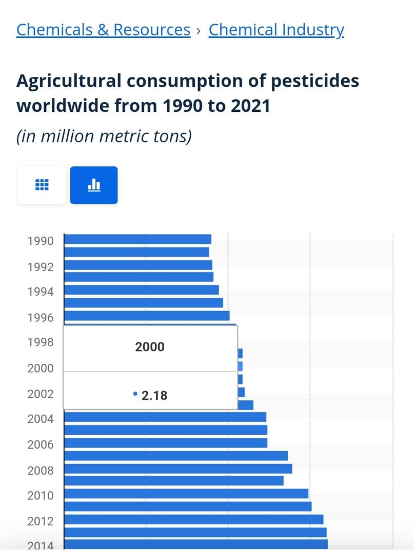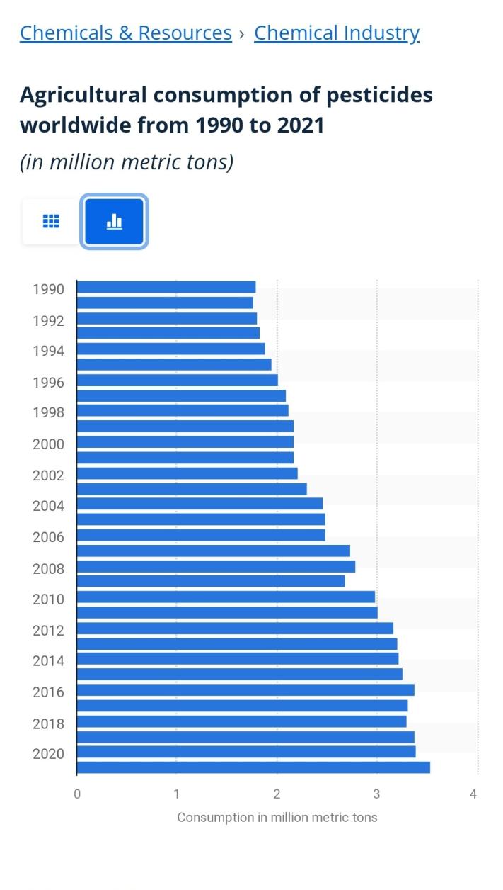 And diesel fuel usage is 1/3 as before. That should be included in all these examples.Originally posted by ColevilleH2S View PostIf your stats are accurate, global pesticide use (herbicide, insecticide, fungicide, etc) has gone up 25% since the year 2000. At the same time total food production has outpaced that figure by 2X. So less pesticide use per kg of food produced.